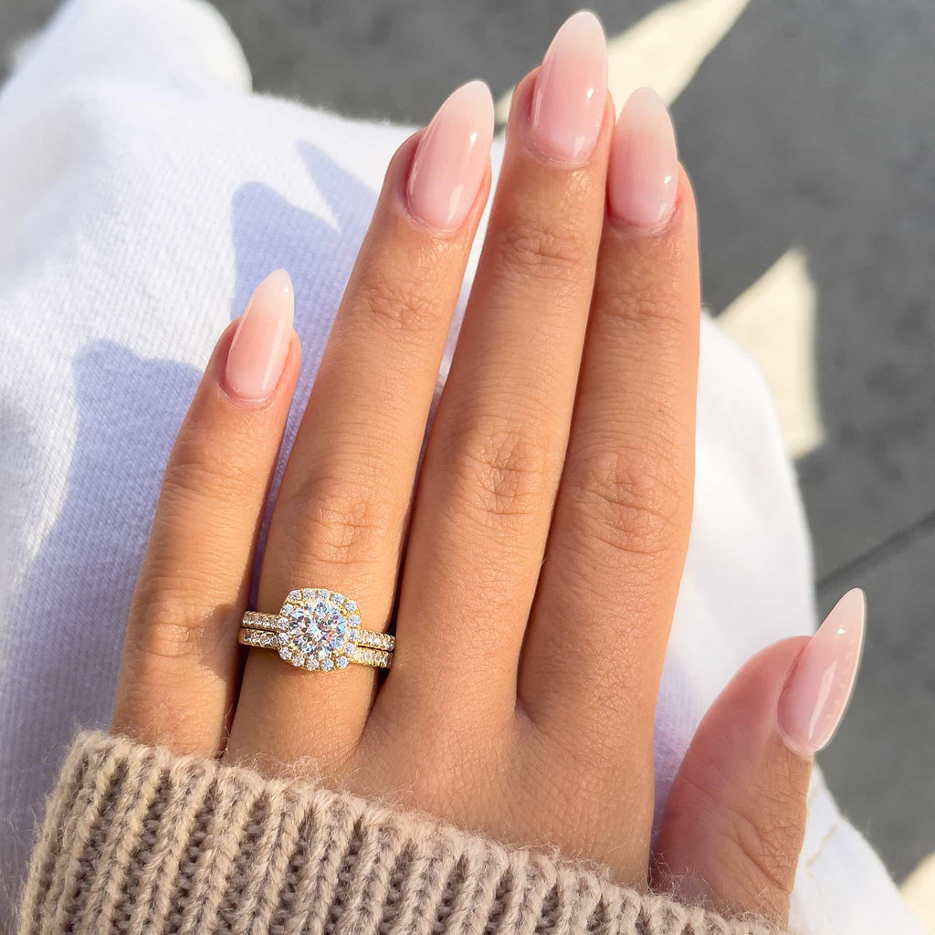 Arguably one of the most popular engagement ring settings out there, the halo is perfect for the bride-to-be who loves a modern classic. This dazzling shape features a center stone surrounded by a halo of smaller stones for an undeniably enchanting look plus plenty of extra sparkle! That’s why the halo-cut ring is the choice rock style of style icons like Sofia Vergara and Olivia Wilde.