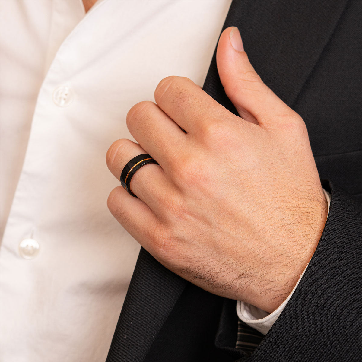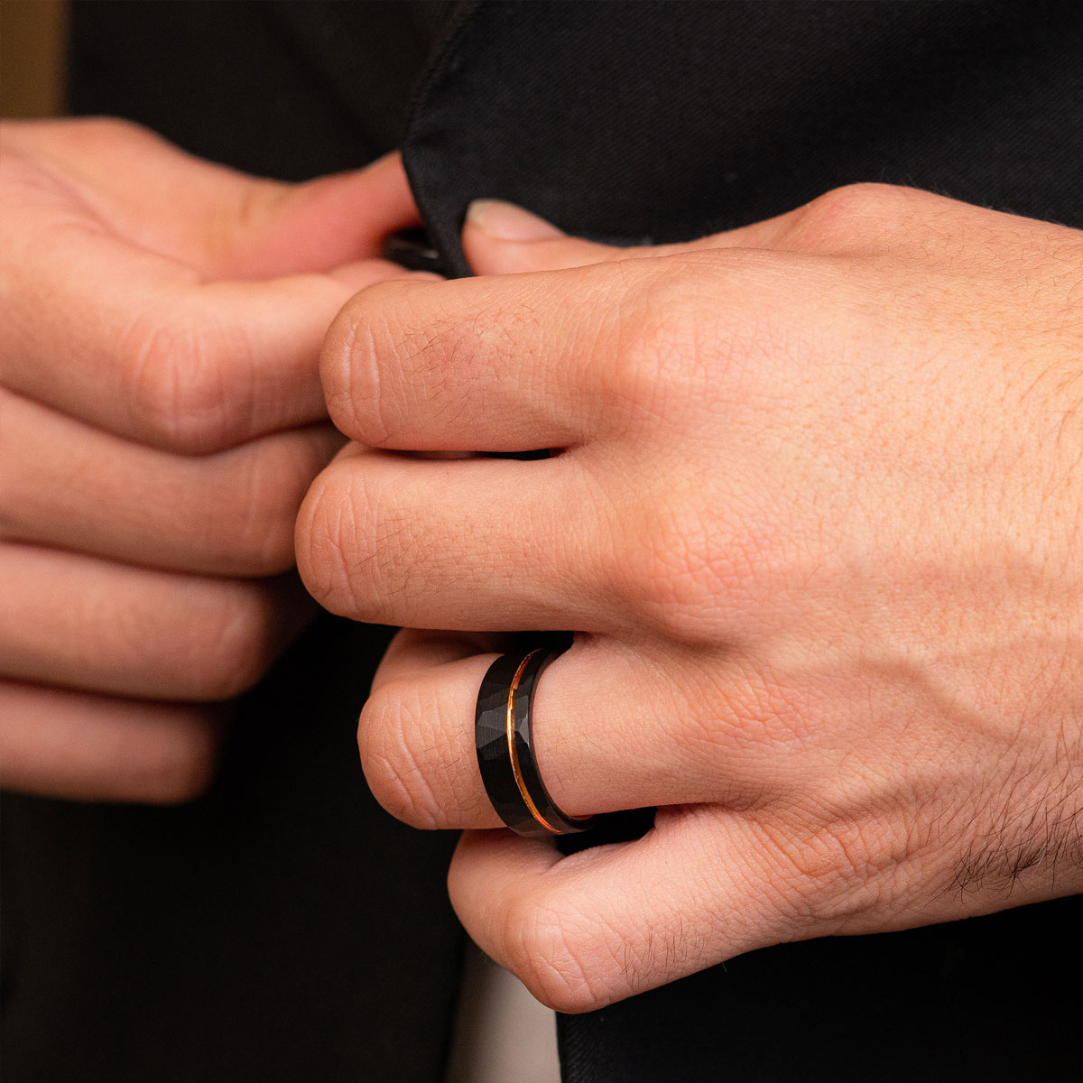 When you prefer your martinis shaken, not stirred, make sure you have this ring on while holding your glass. The Bond is a hammered tungsten ring with an offset rose gold strip so you can always have a Goldfinger. A lady’s Diamonds are Forever, but with this men’s ring it will guarantee you have a Goldeneye.
