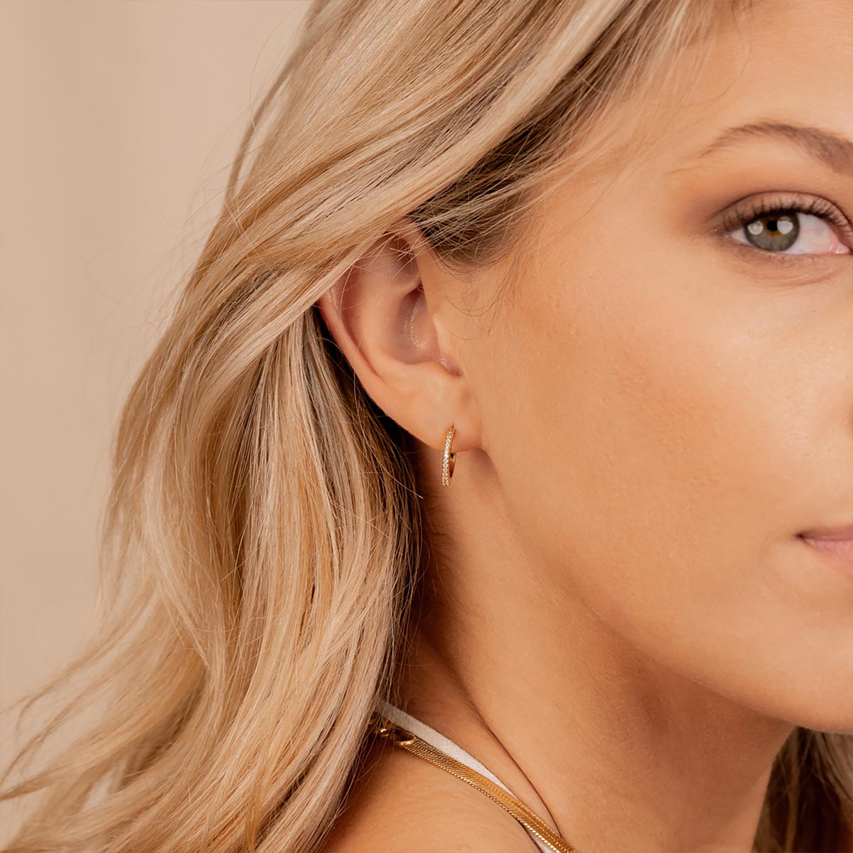 The Darling earrings are lightweight and durable - perfect for your everyday life. Plated in 18k gold and lined with high quality simulated diamonds, pair them with any outfit for a dainty gold flair. Dress them up or dress them down, you will not want to take these earrings off.