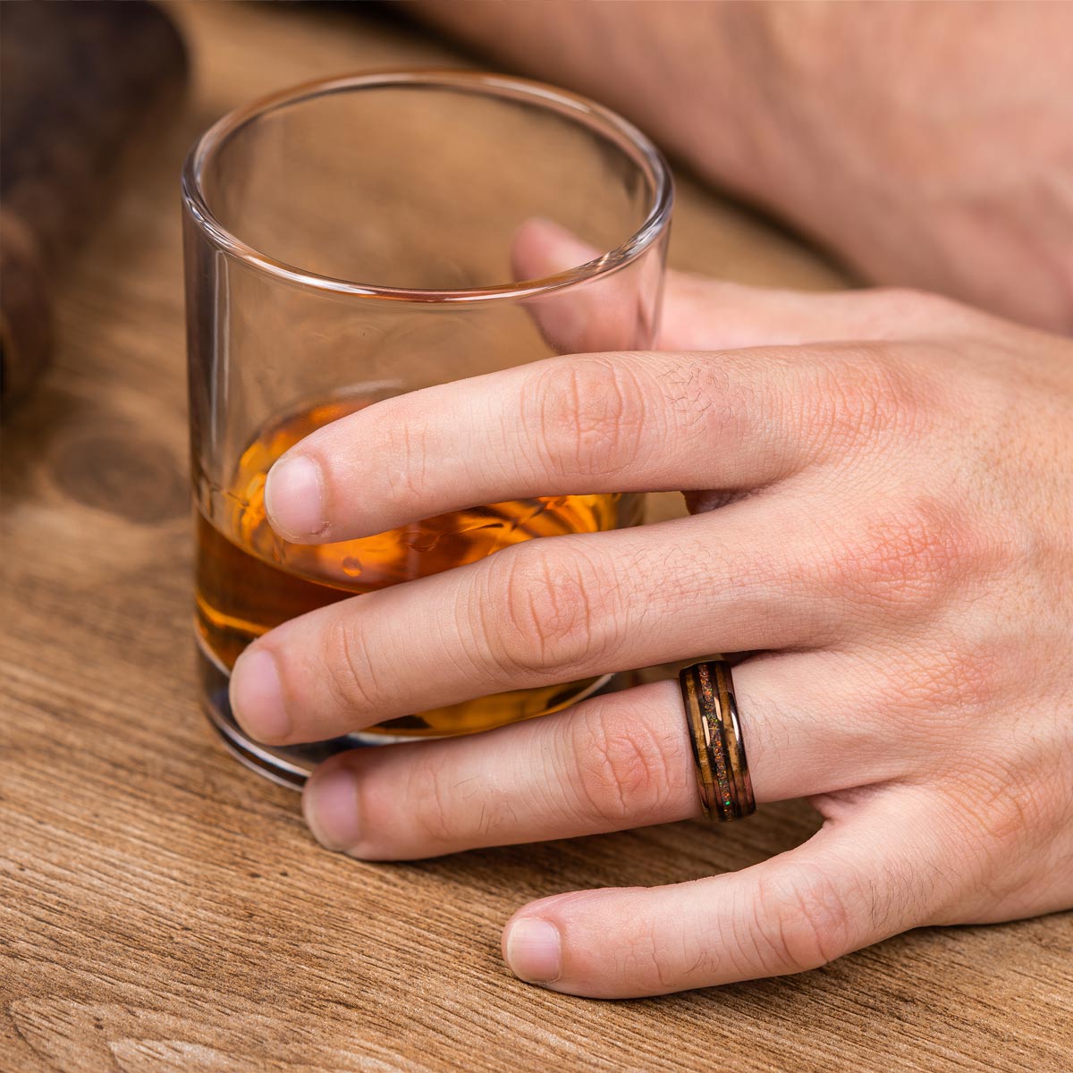 The Ember stands out with its striking combination of bronze-colored tungsten and intricate inlays. Featuring a warm bronze tone that complements any skin tone, this ring is adorned with two distinctive inlays: a vibrant lab-created fire opal at the center and elegant Hawaiian Koa Wood on either side. Designed for the modern gentleman, The Ember offers durability and style, making it a perfect choice for those who appreciate both classic appeal and innovative design. Whether you’re engaged, married, or simply seeking a unique addition to your collection, this ring is built to withstand any activity while maintaining its sophisticated look.