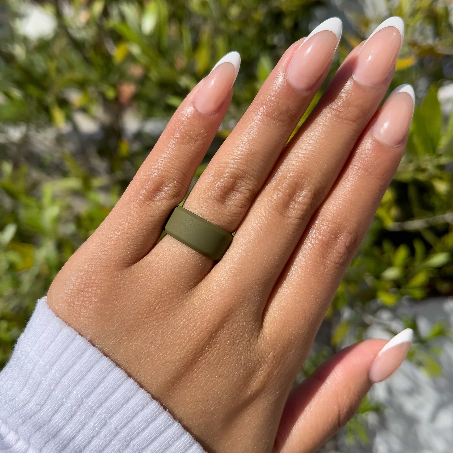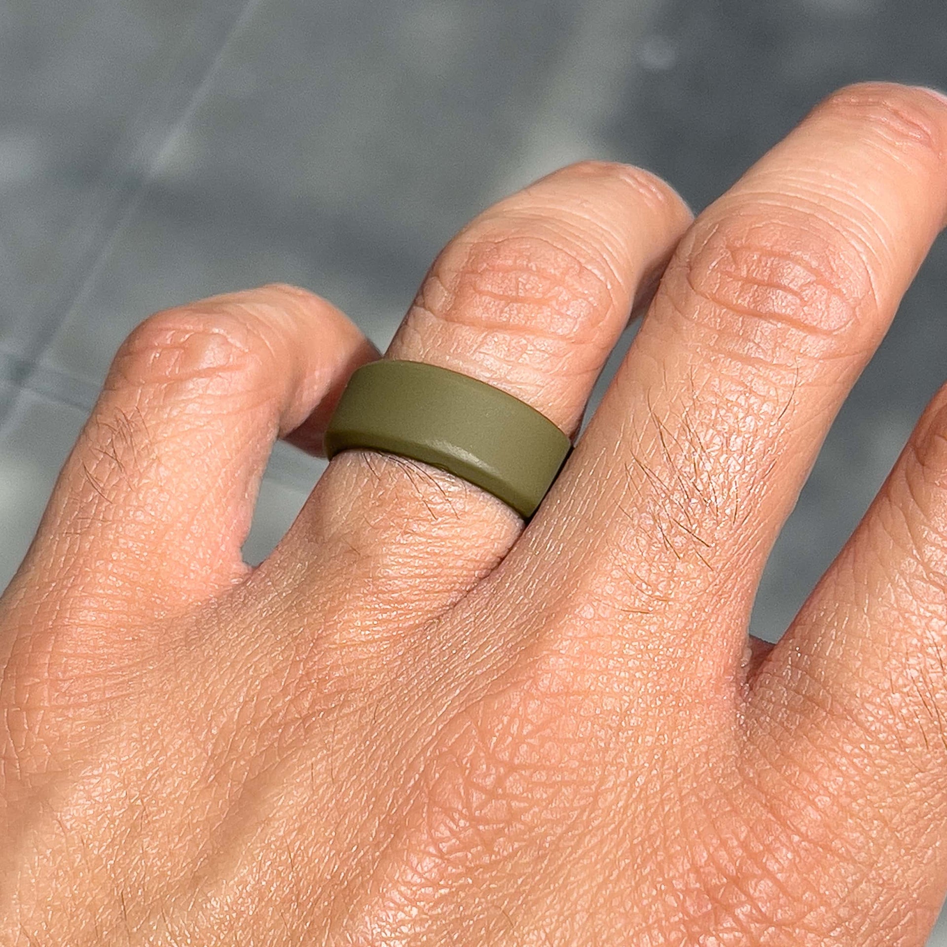 If you live an active, rugged, or outdoorsy lifestyle, The Force Flex is the perfect wedding band for you. With its 8mm width and beveled edges, this ring combines clean lines with high-performance design in a nature-inspired olive finish. Made from premium silicone, this ring is flexible, and designed specifically for all day comfort whether you’re at work, working out, or out in the elements. Upgrade to a wedding ring that is strong, durable, and always ready for anything. Also available in black, white, silver, cobalt, dune, ash gray, and military green.