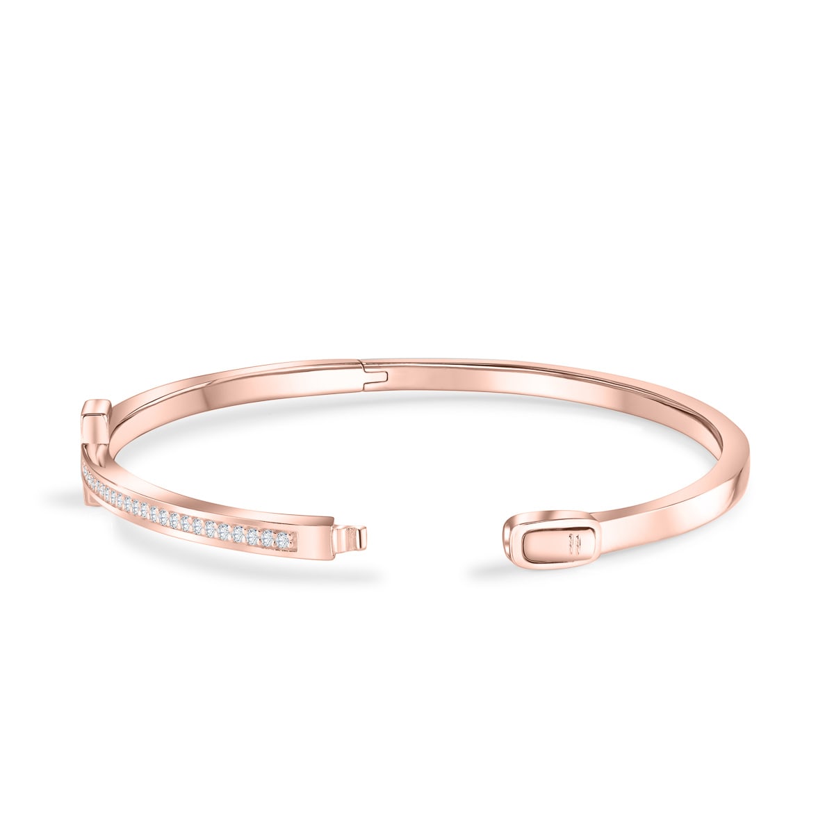 Elegance at its finest! The Gia is a gorgeous and sturdy bangle with delicately set gleaming stones around its exterior and mini rectangle clasp. Made with the highest quality 925 sterling silver, simulated diamonds, and plated in rose gold. This bracelet will keep its radiance for years to come! The Gia allows you brilliance and sophistication, all in the palm (or wrist) of your hand.