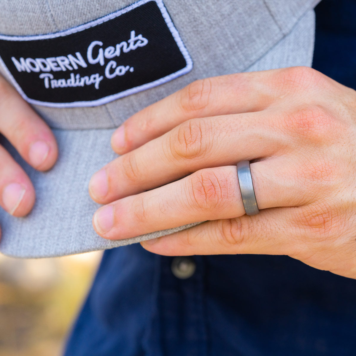 A timeless classic, this sturdy 6mm Tungsten Ring will withstand the daily life of a hard-working gentleman. With a domed top, silver brush finish, and sleek black interior, The Shadow will become your go-to ring for any situation!