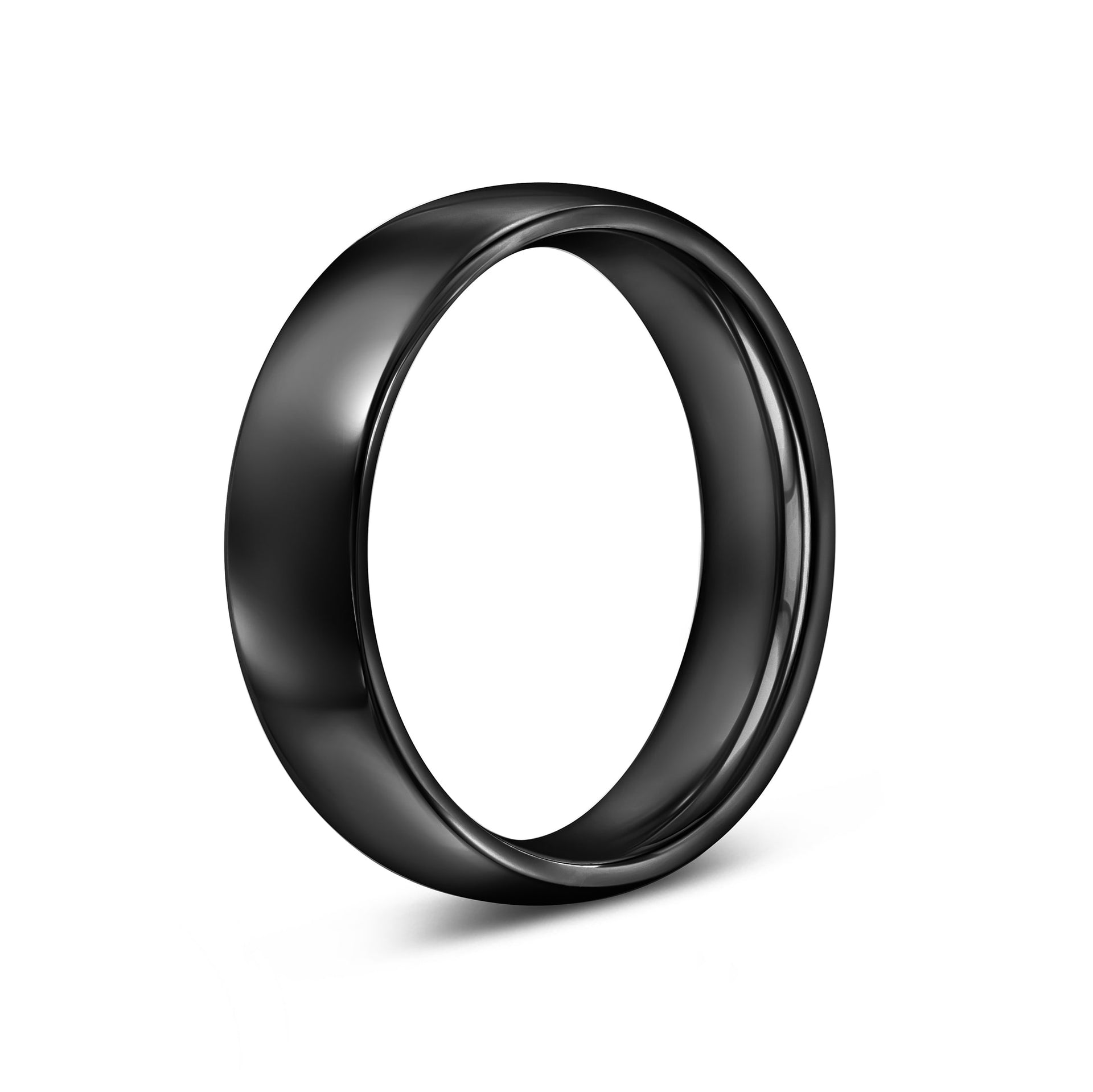 Meet the wedding ring that challenges all conventions. The Horizon is a unisex wedding band made out of stainless steel coated with a black reflective finish that makes this ring anything but ordinary. Designed for those who prefer an edge to their style, its gender neutral design is the perfect blend of sophistication and boldness. Lightweight yet durable, this piece proves that simplicity can be striking. Whether worn as a wedding band or a daily signature piece, this ring lets you express your individuality with confidence. Also available in silver, gold, and rose gold colors.