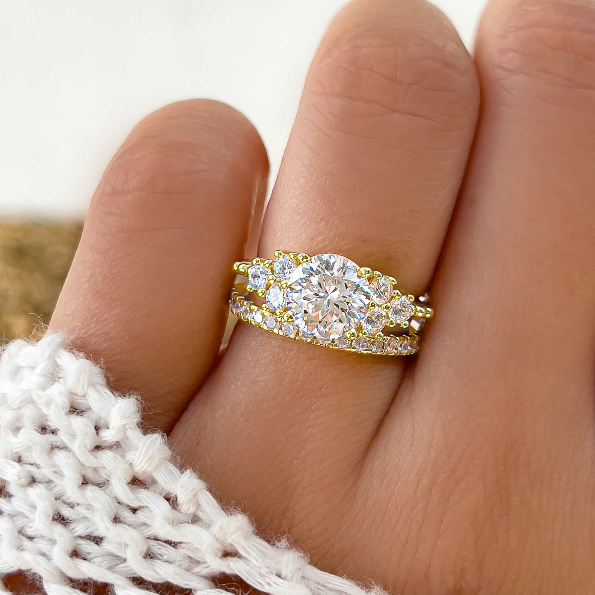 This brilliant engagement ring has been one of our best sellers for years. But what exactly makes The I Do so special? Perhaps it’s that dazzling 1.75 carat round cut center stone that catches light in the dreamiest of ways. Or maybe its sleek, yet uniquely designed 925 sterling silver band that gives both enchanting, yet modern vibes. The I Do’s style is fabulous enough that it can be worn on its own, but classic enough to be paired with any one of our wedding bands to create a gorgeous wedding ring stack. Try pairing it with The Promise or The Zoey and you’ll never look back. All we know for sure, is that this silver engagement ring was designed with love in mind - did you spot the hidden heart detailing? Also available in silver.