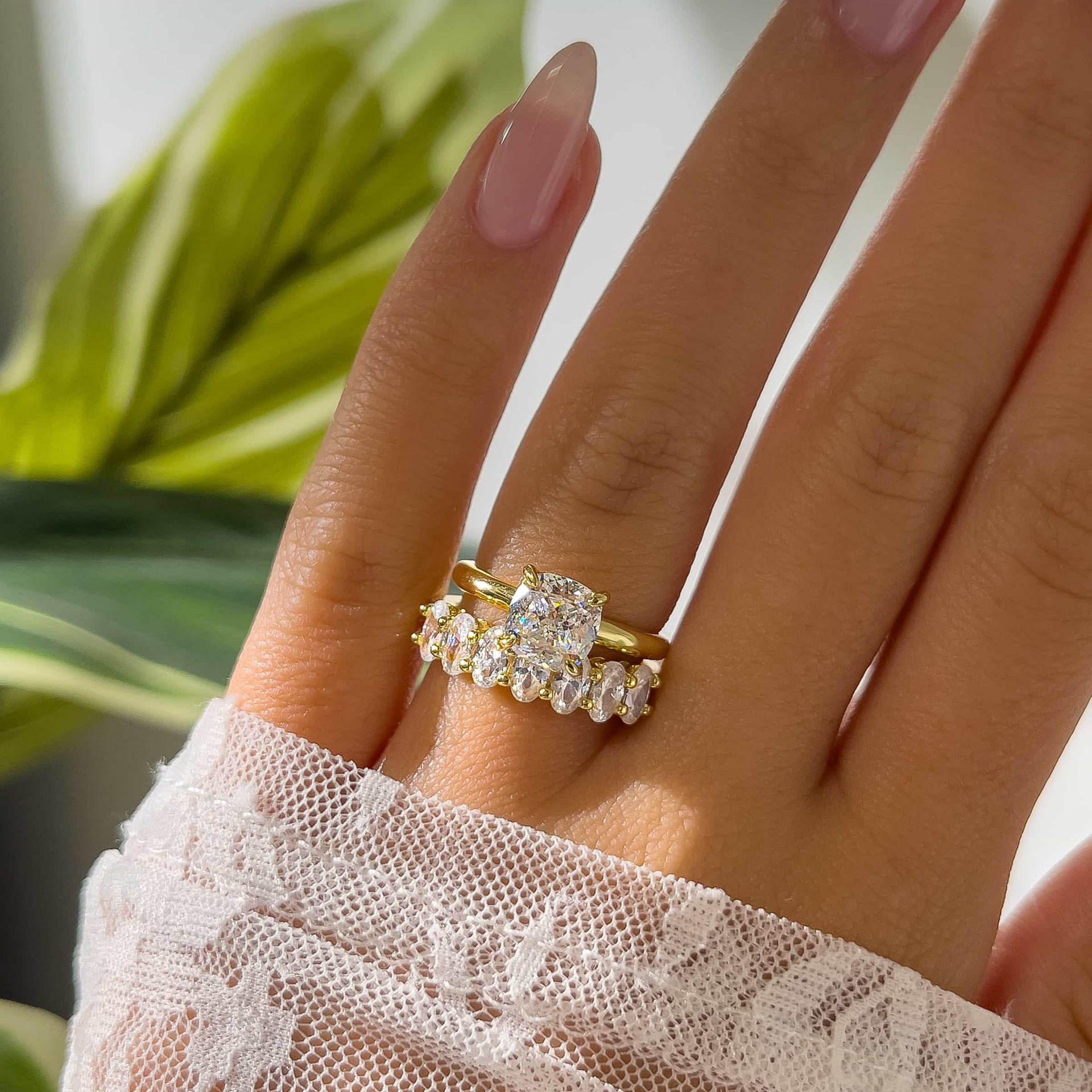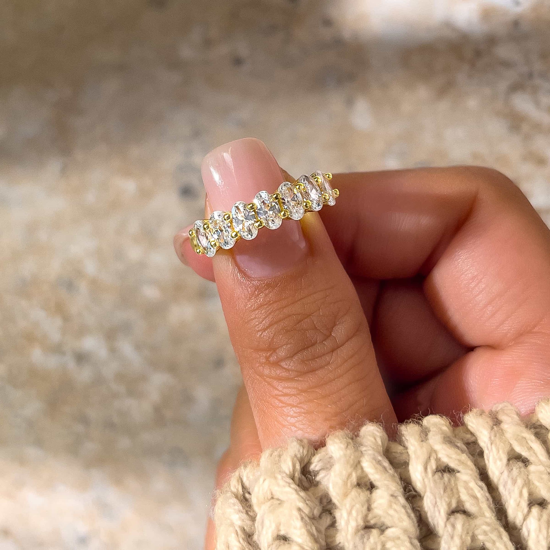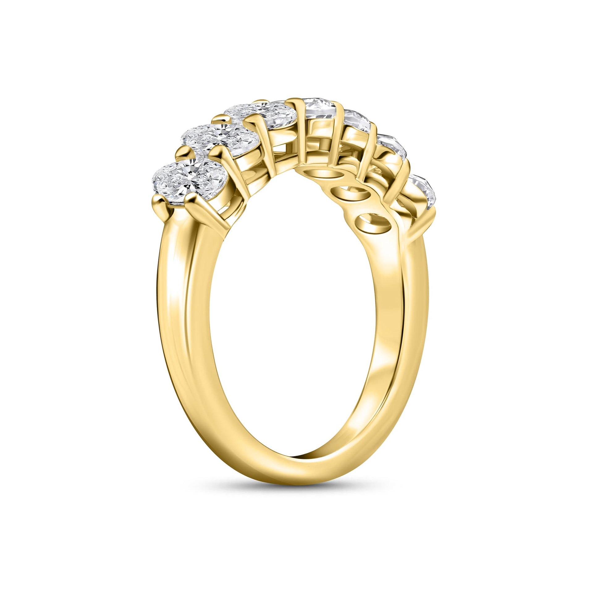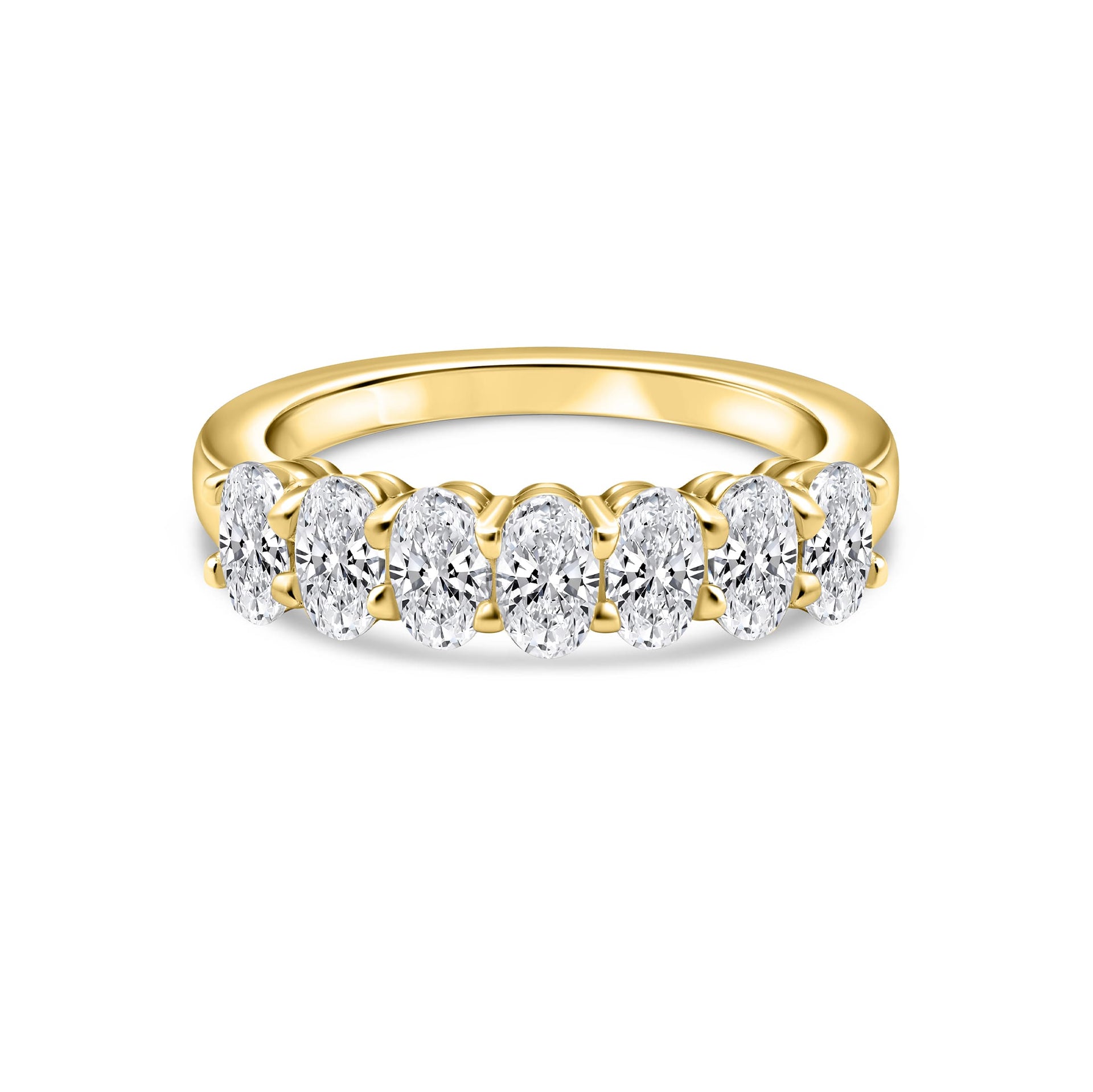 Now here’s a wedding ring that knows how to bring everyday sparkle with a modern aesthetic. Say hello to The Sienna, a gorgeous wedding band crafted with a unique half eternity band made up of petite, oval cut conflict-free stones set in a sleek and polished yellow gold. This radiant row of stones has a 24/7 sparkle that will put a glistening display of elegance right on your finger. Each stone is pronged individually and securely placed for a high-quality design that will last. Pair this beautiful ring with The Michelle to debut a brand new look, or wear it solo as an everyday accessory. Also available in silver.