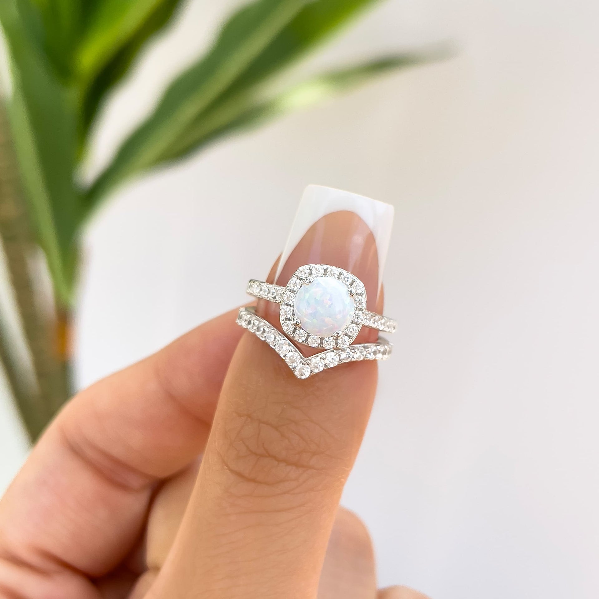 A Unique Simulated Opal Halo Engagement Ring