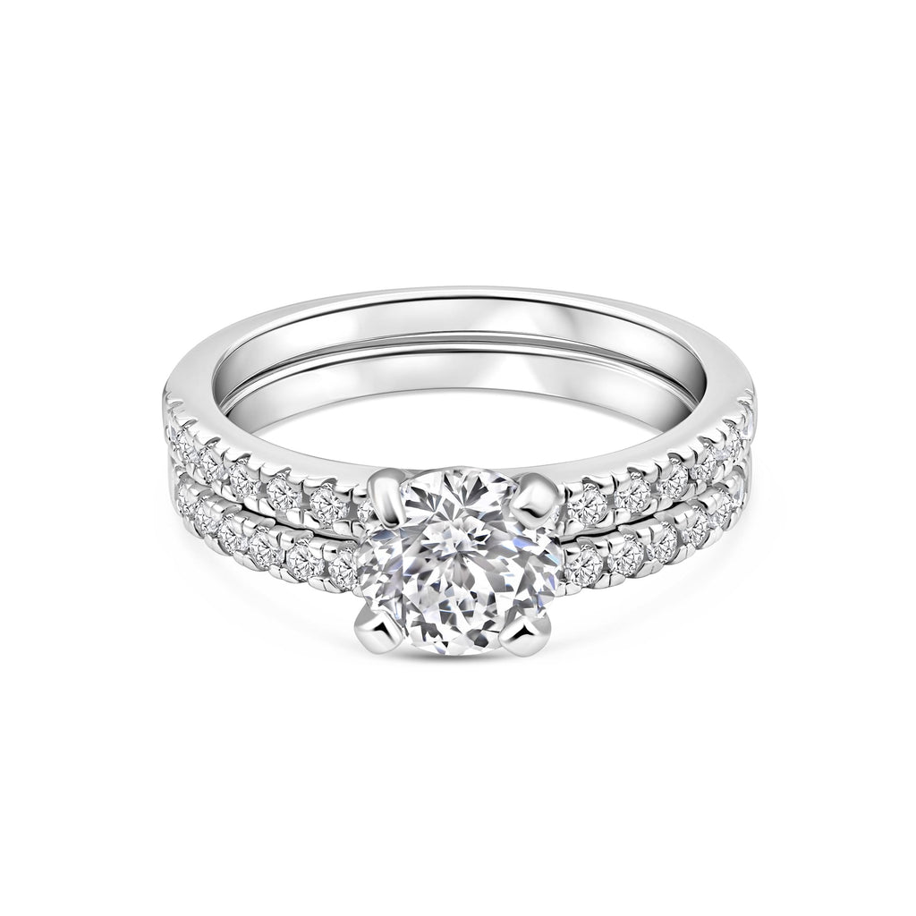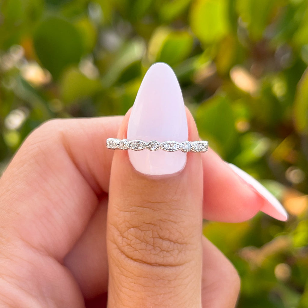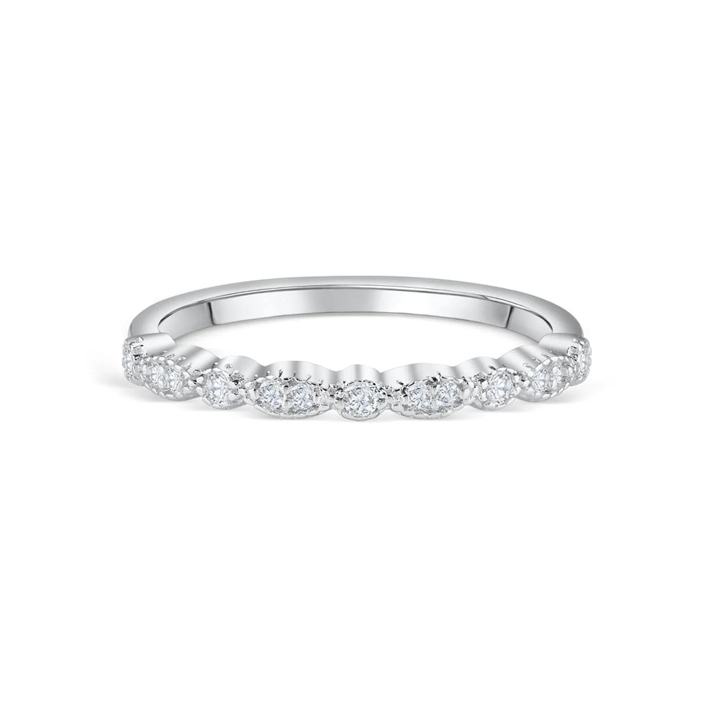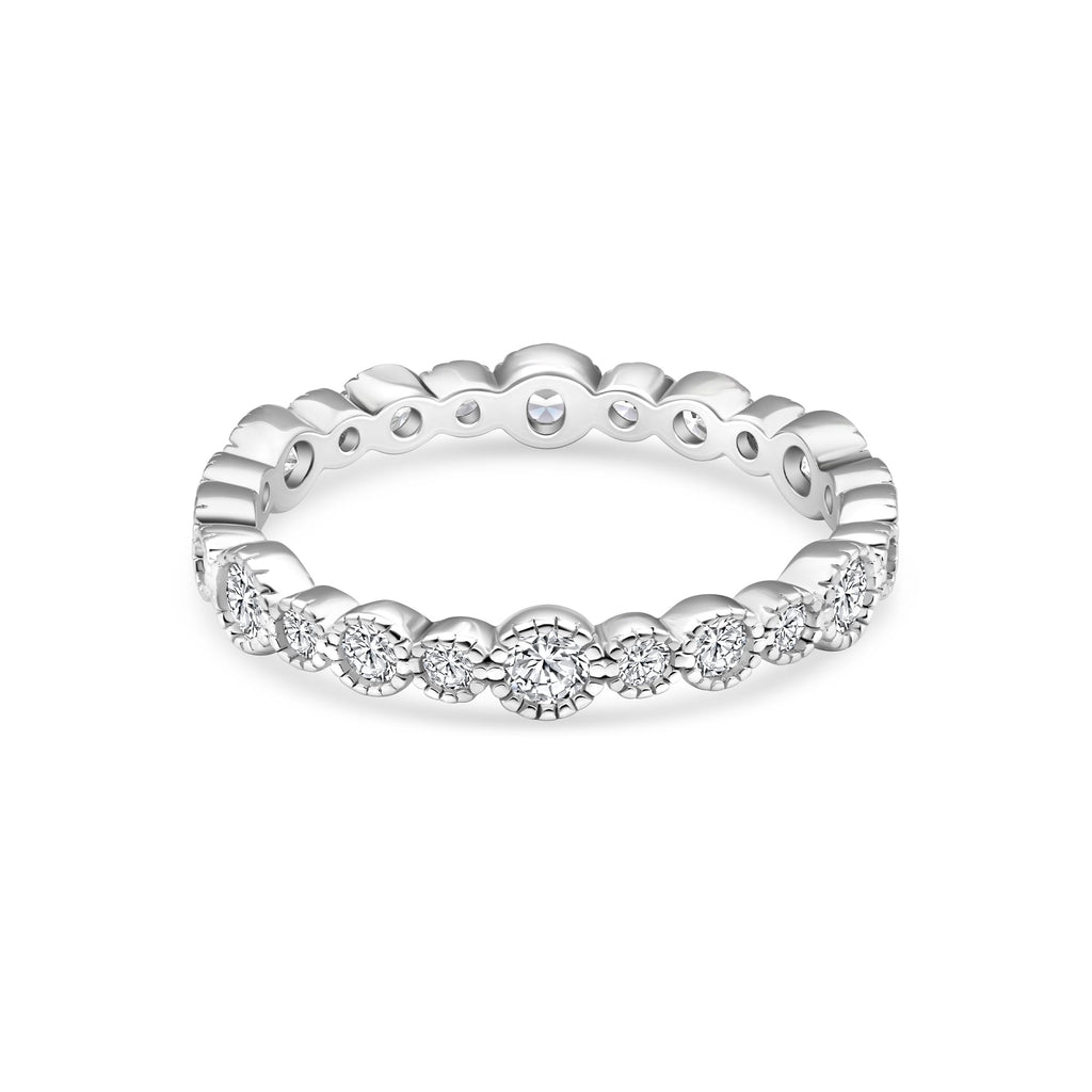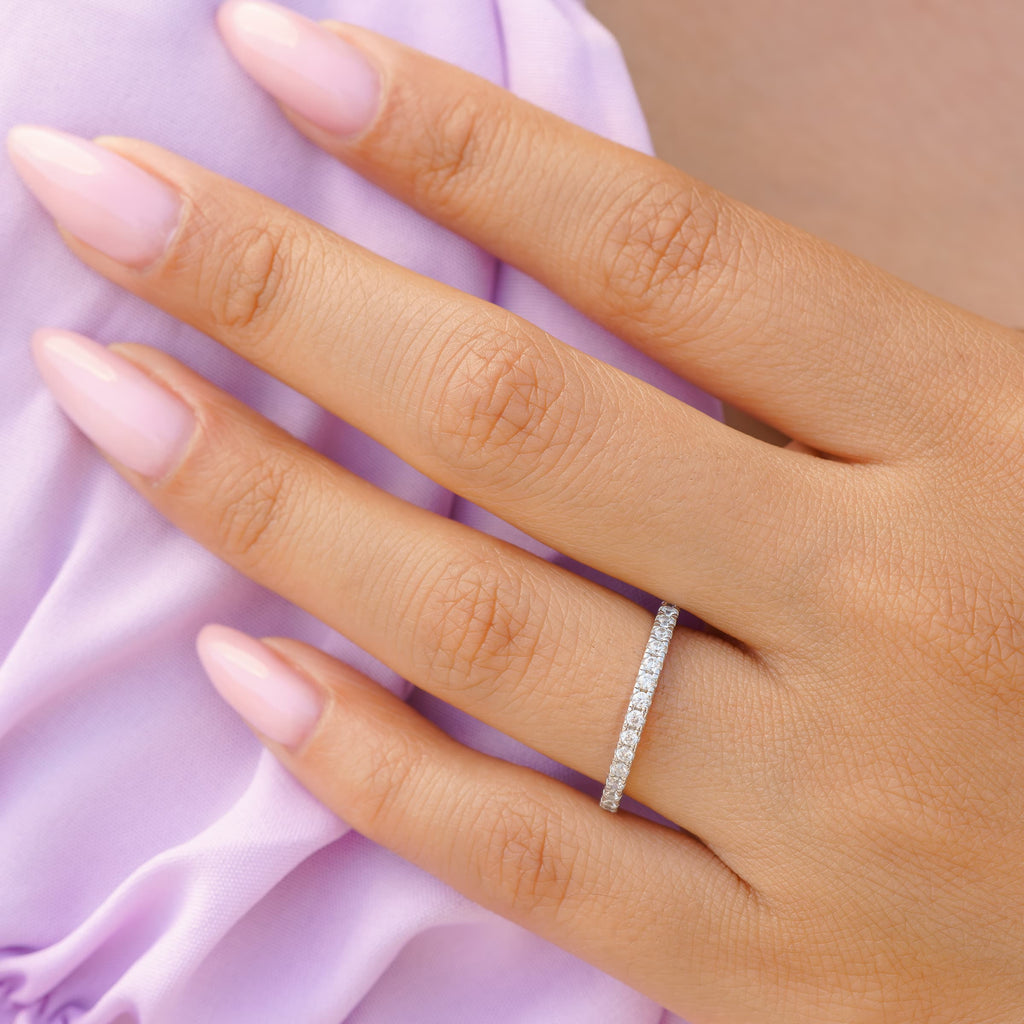 Many rings are full or half-eternity bands, making them perfect as anniversary rings, stackable spacers, or accents to your engagement ring. Looking to complete your set? Pair your favorites with one of our affordable wedding ring sets for a cohesive, curated look.