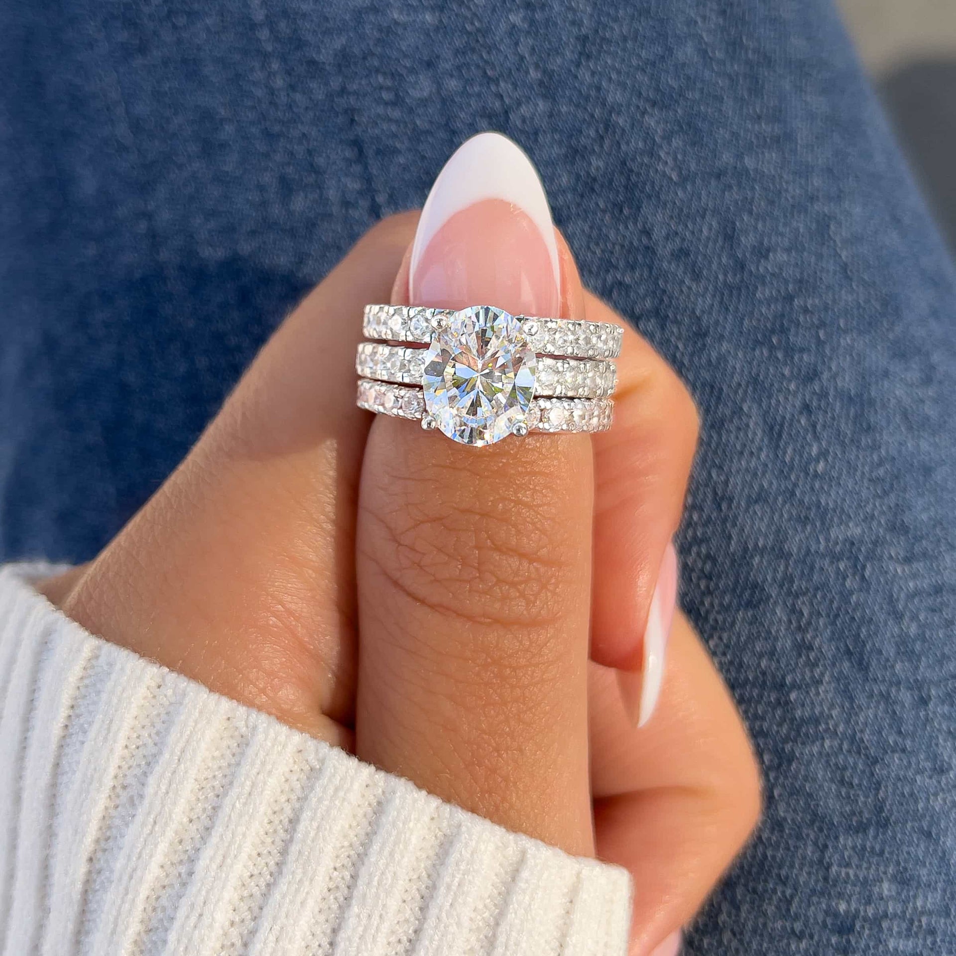 Looking for the next staple for your everyday ensemble? Enter: The Eternity Stacking Set. The two 2.6mm silver eternity bands can be worn with an engagement ring or by themselves for a look that’s got both a modern and chic vibe. A popular choice for a wedding band on its own, The Eternity Stacking Set pairs well with any of our engagement rings for those who want a big shine. Try wearing it with some signature rings, such as The Grace or The Blair for unparalleled elegance. This stacking set is available in gold and rose gold.
