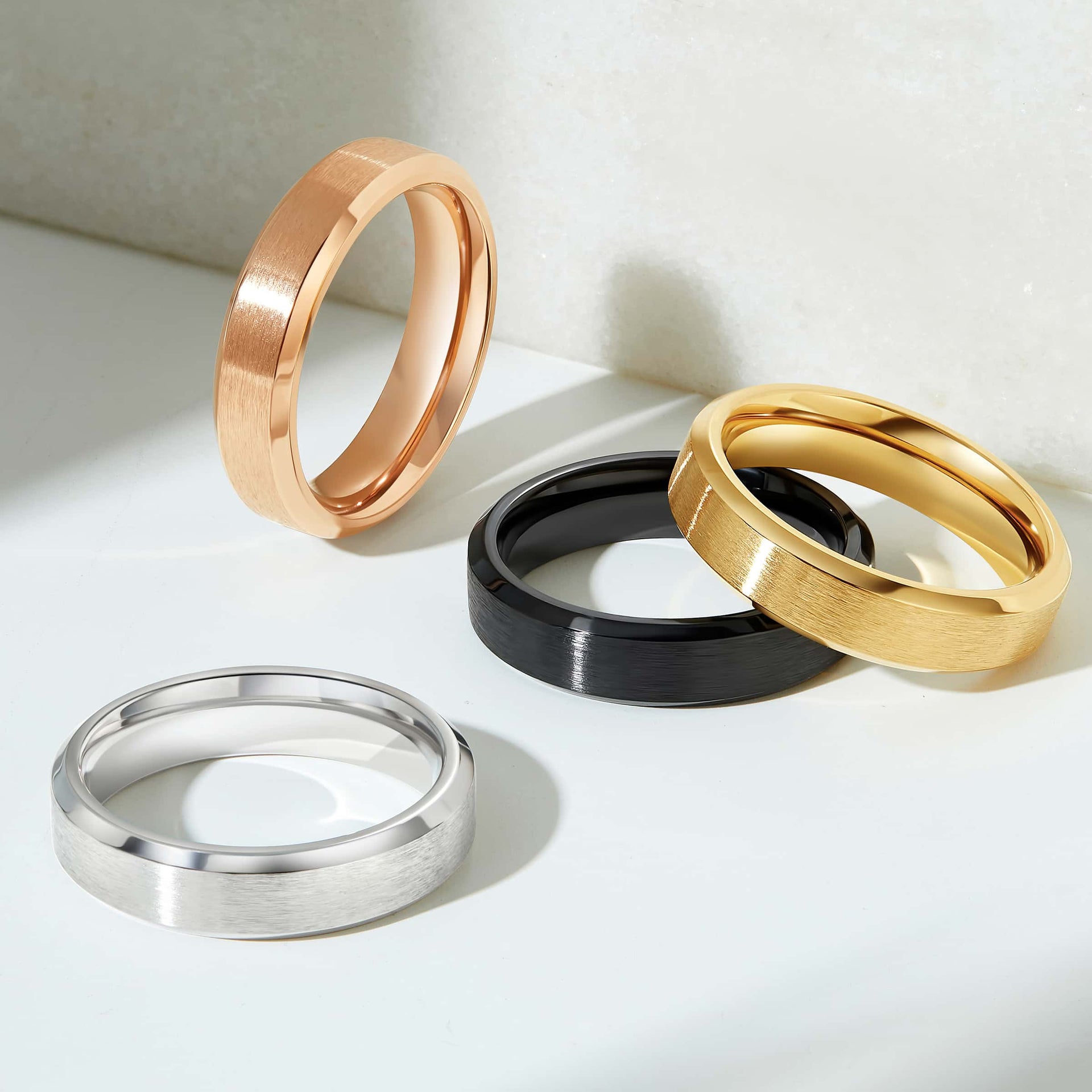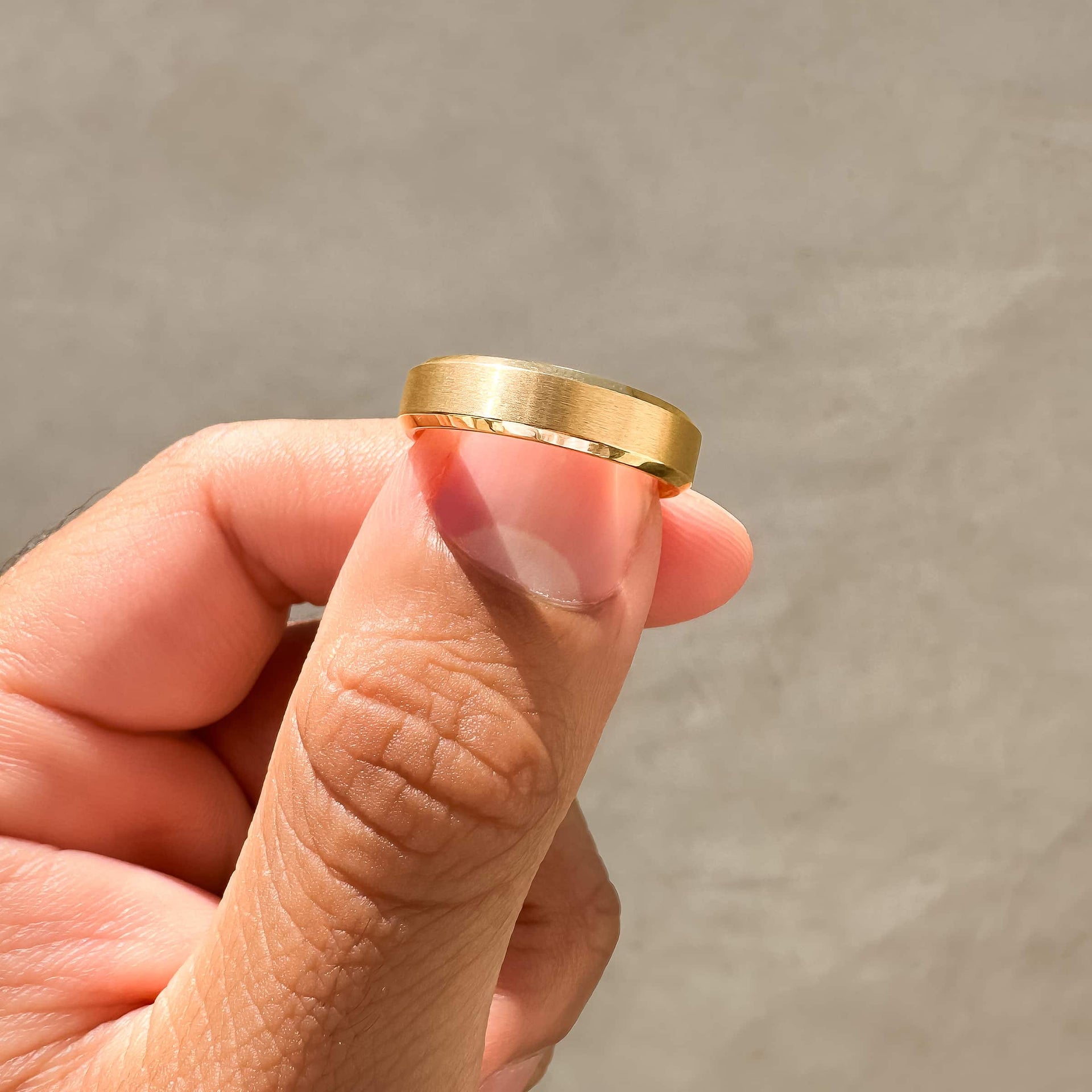 Versatile and inclusive, it serves as an exceptional choice for married couples, the engaged, or anyone seeking to enhance their ring collection with a top-quality addition. The price, fit, size, and brushed center—this piece has everything! Also available in silver, black, and rose gold colors.All rings are nickel free, comes with a Lifetime Warranty, and are guaranteed not to turn your finger green.
